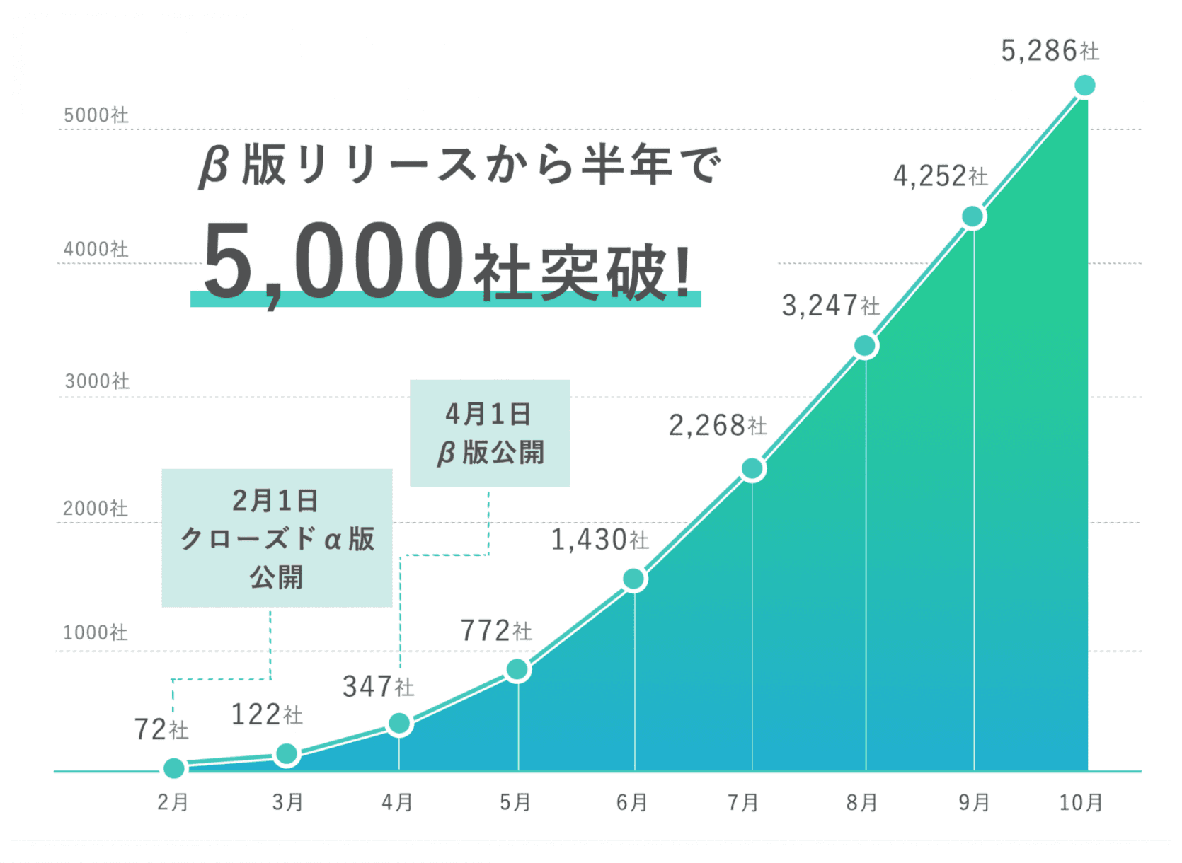 2018年4月にβ版の提供を開始した法人営業を支援する企業情報データベースである「Baseconnect LIST」は、リリースから半年で導入企業数5000社を突破しました。ここ3ヶ月はマーケティングコストをほとんどかけずに毎月1000社以上の新規利用があります。