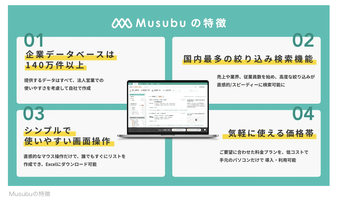 企業情報データベース「Musubu」の主な特徴